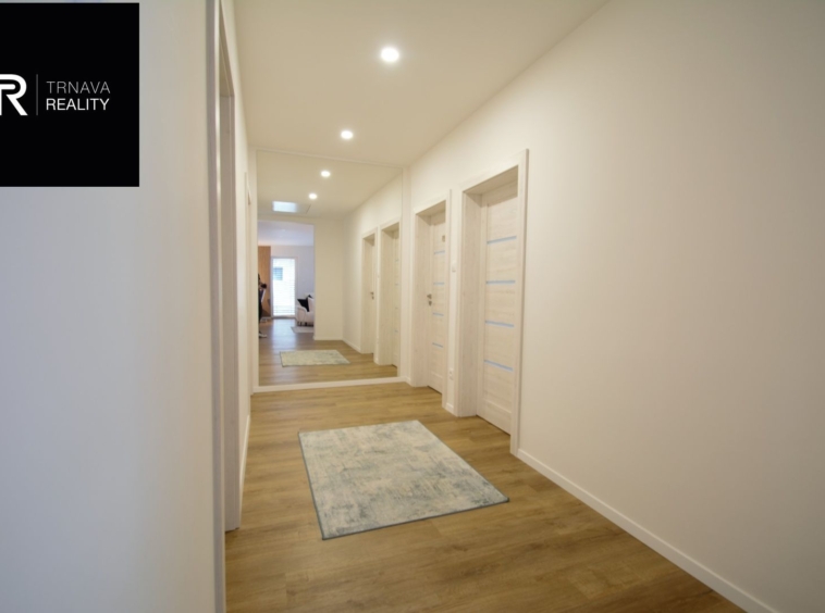 TRNAVA REALITY – Offers for rent a stunning brand new spacious 4-room family house (123 m²) in Galanta, featuring a garage, covered terrace, swimming pool with complete technology, and an outdoor gym. The house is fully air-conditioned and fenced, with an electric gate and video intercom at the front, as well as a large electric gate for vehicles. The property also includes two additional parking spaces. Conveniently located just 5 km from the R1 motorway (Nitra 32 km, Trnava 30 km).