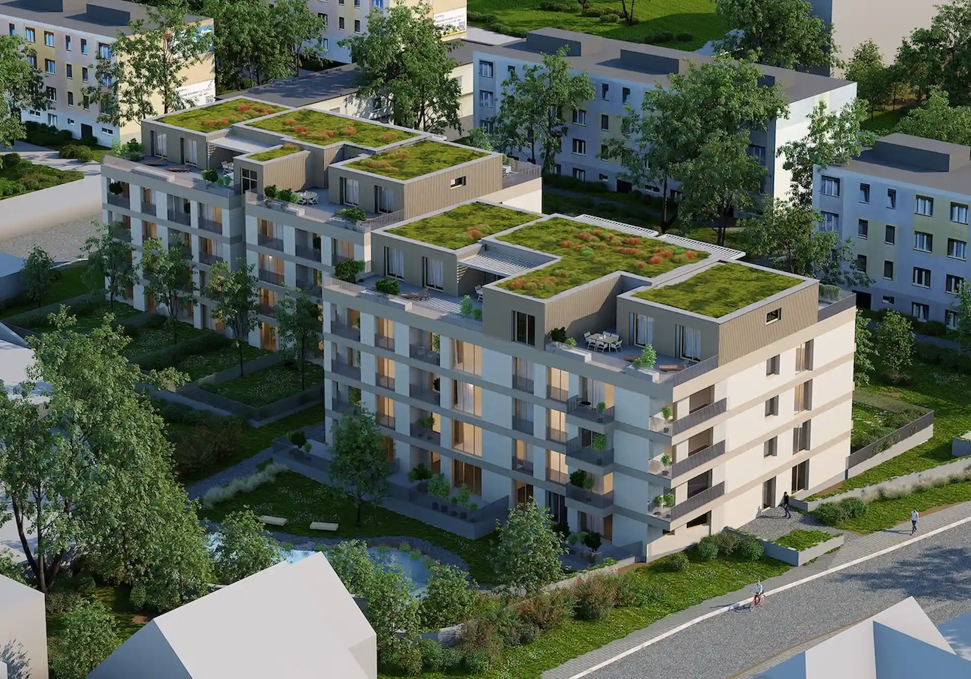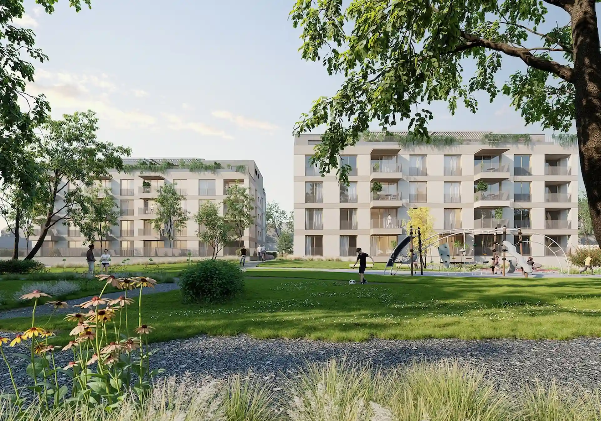 Všetky byty na prízemí budete mať so zelenou záhradou.
